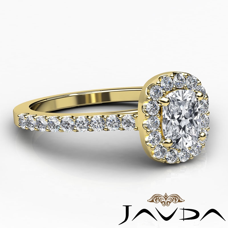 Cathedral French U Pave Halo style Engagement Ring, center is Cushion shape Diamond Report by GIA, D Color & VS1 clarity, Made in 14k Yellow Gold (1.5 ct. tw.)