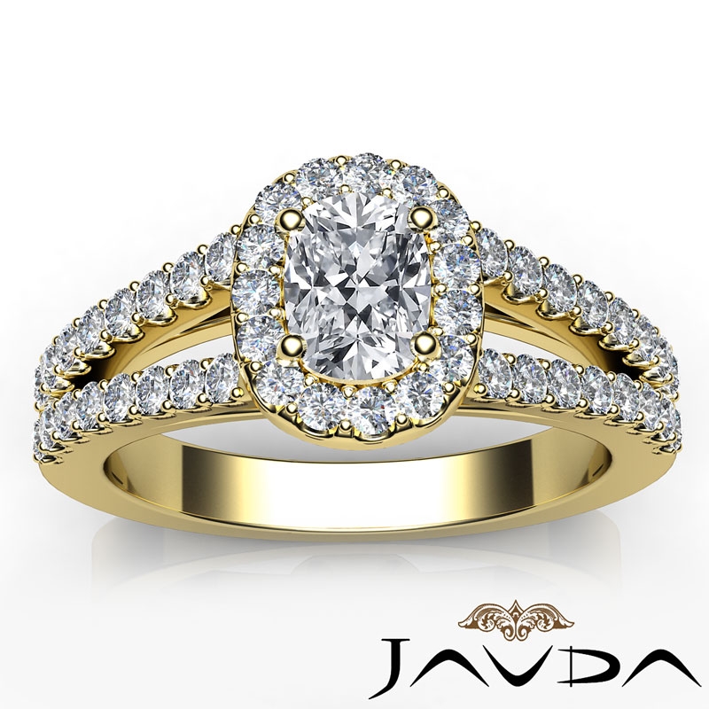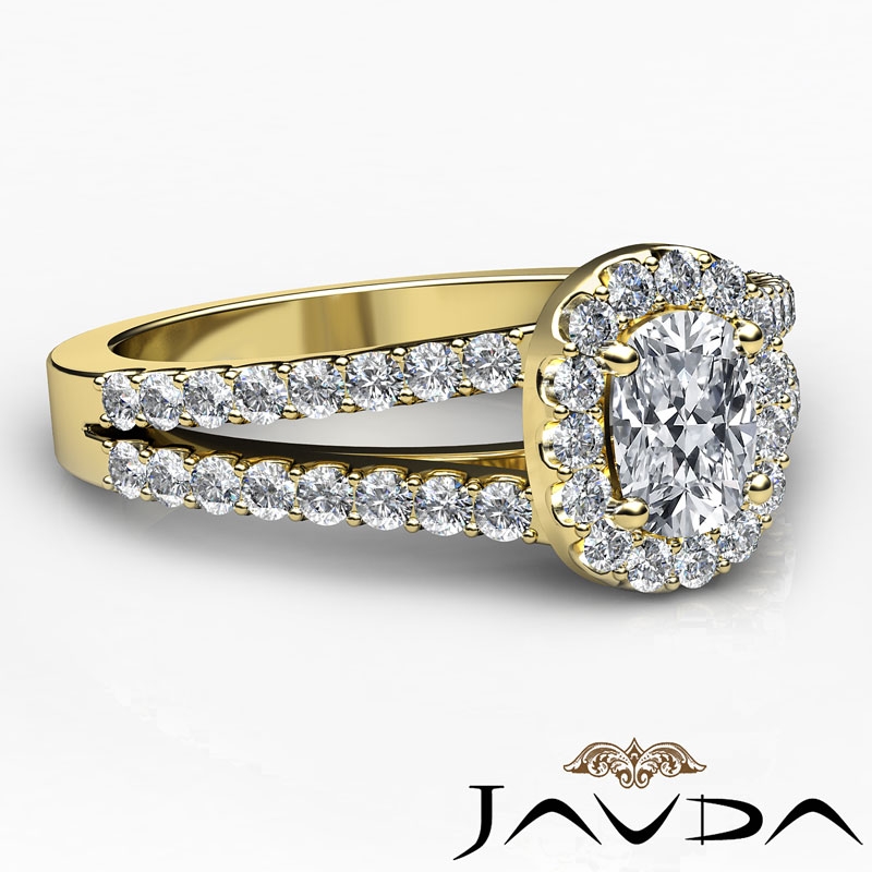 Halo Prong Diamond Engagement Cushion Semi Mount Gorgeous Ring 18k Yellow Gold 0.75Ct - javda.com