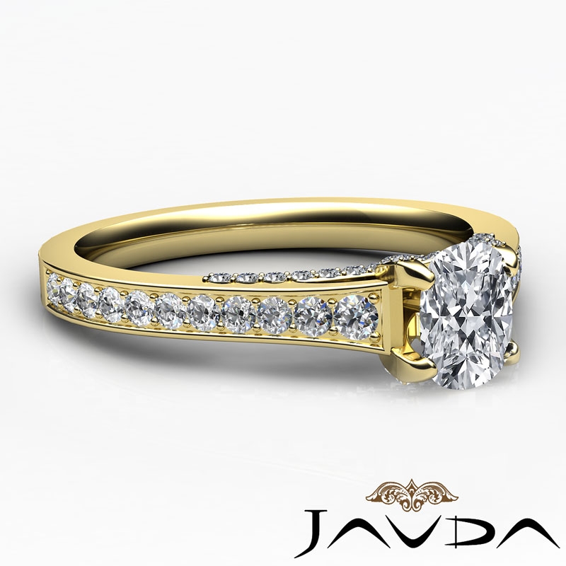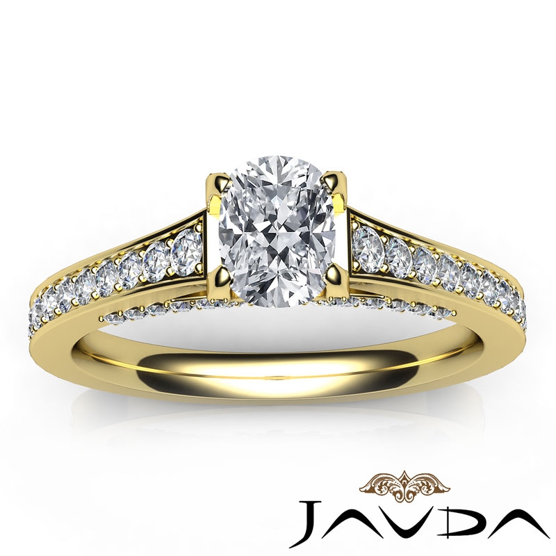 Diamond Engagement Cushion Cut Semi Mount Pave Setting Ring 18k Yellow Gold 1.1Ct.