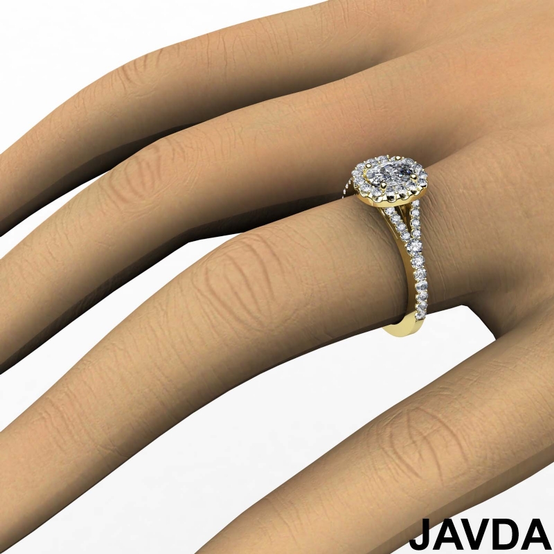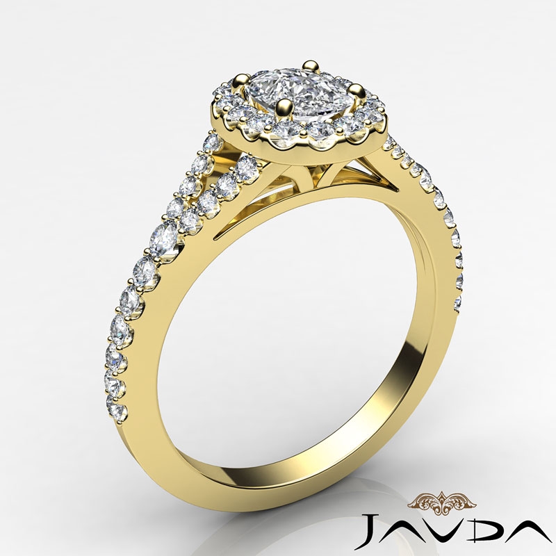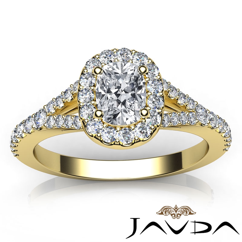 Diamond Engagement 18k Yellow Gold Halo Pave Setting Cushion Semi Mount Ring 1.25Ct.