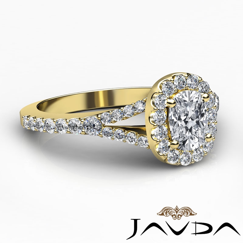 Scalloped Halo Split Shank style Engagement Ring, center is Cushion shape Diamond Report by GIA, D Color & VS1 clarity, Made in 18k Yellow Gold (1.75 ct. tw.)