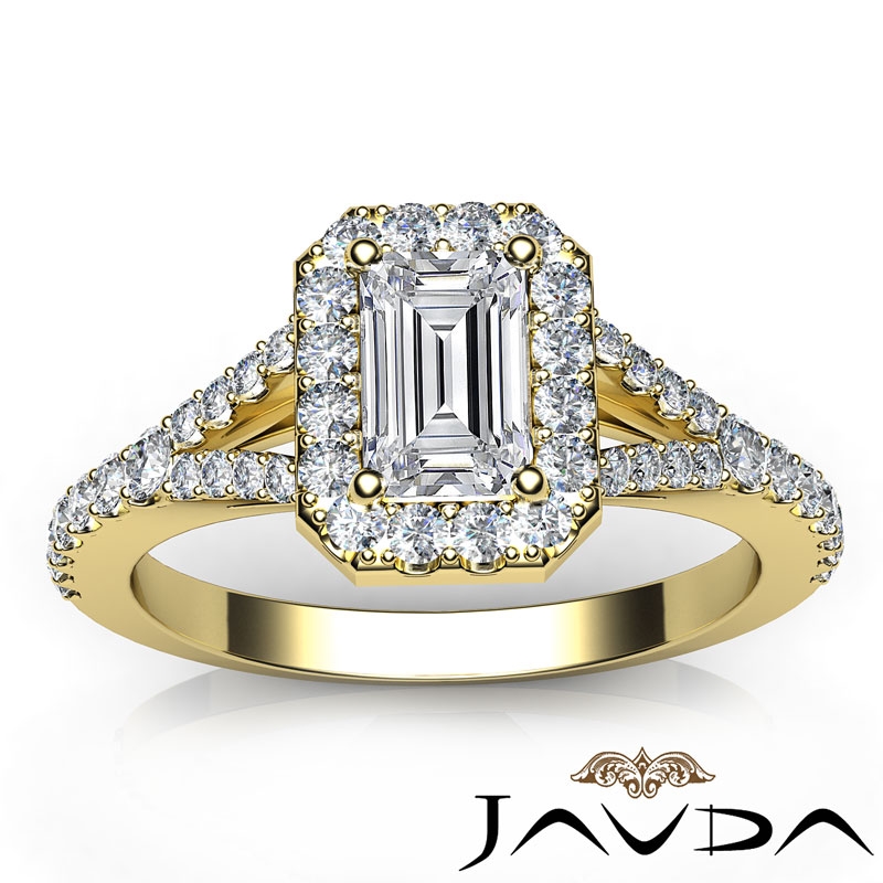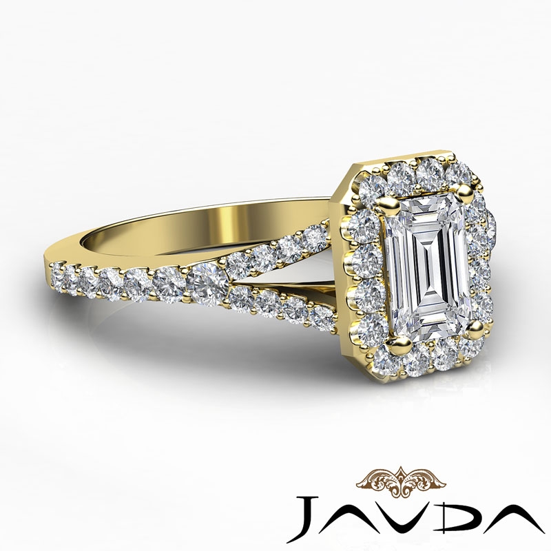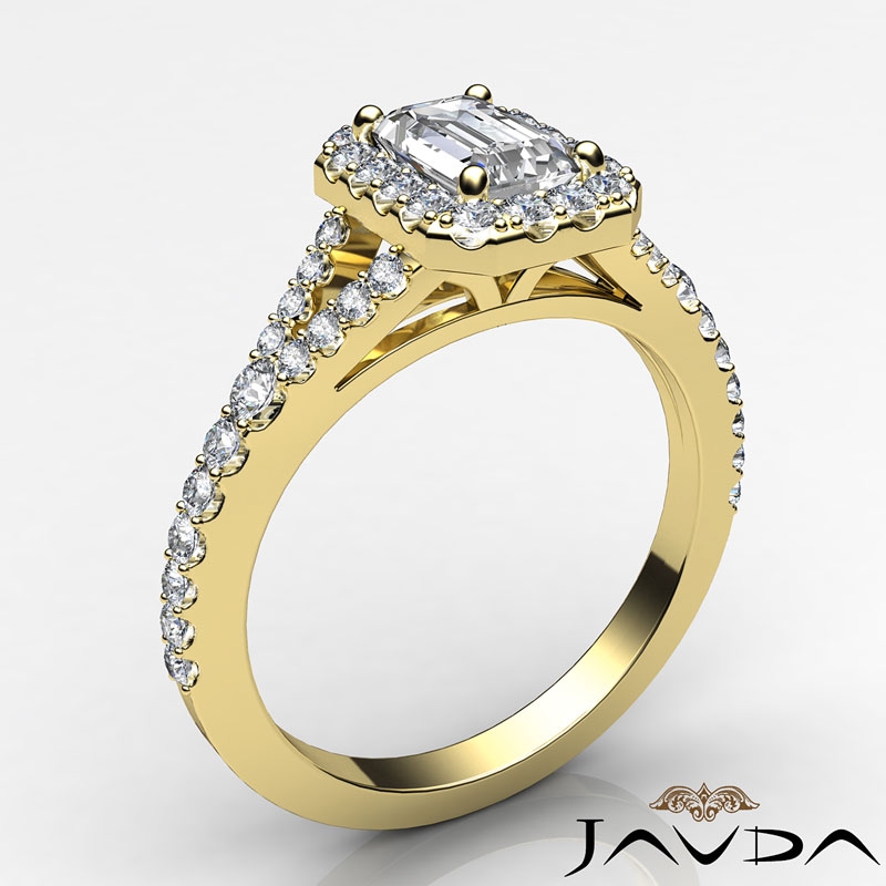 Diamond Engagement 18k Yellow Gold Halo Pave Setting Emerald Semi Mount Ring 0.5Ct.