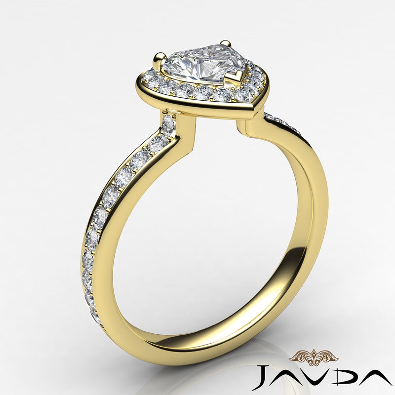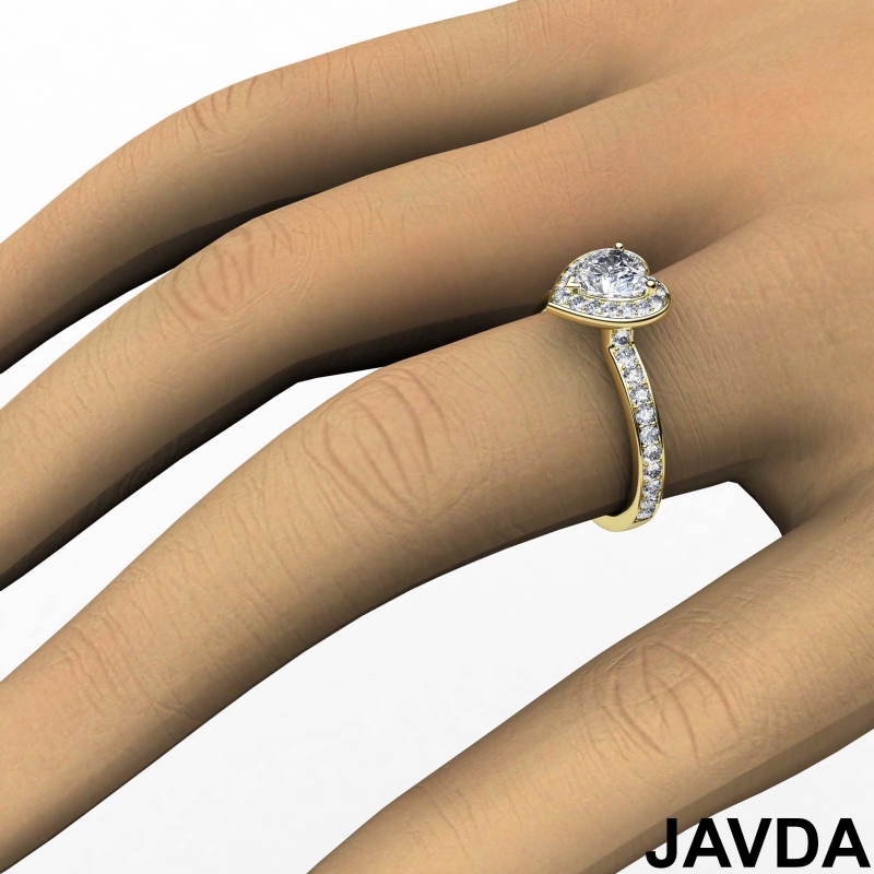 Diamond Engagement Halo Pave Setting Heart Semi Mount Ring 18k Yellow Gold 0.45Ct.