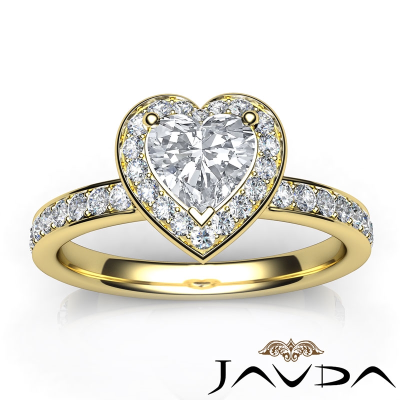 Micropave Halo Tall Cathedral style Engagement Ring, center is Heart shape Diamond Report by GIA, G Color & SI2 clarity, Made in 18k Yellow Gold (0.96 ct. tw.)