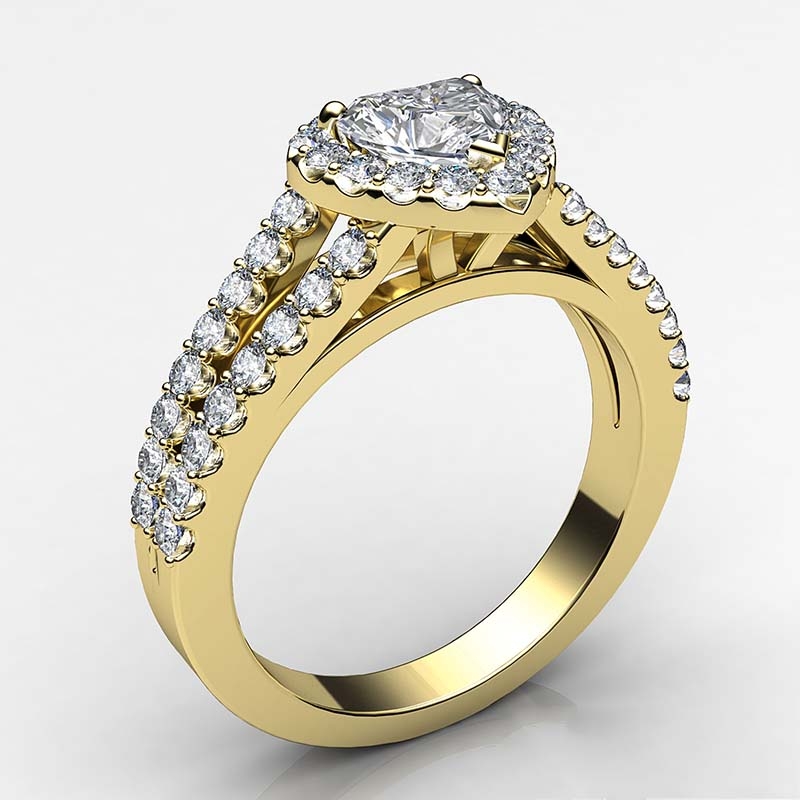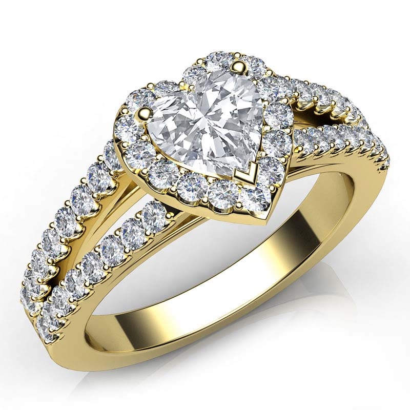 style Engagement Ring, center is Heart shape Diamond Report by IGI, E Color & VS1 clarity, Made in 14k Yellow Gold (1.85 ct. tw.)