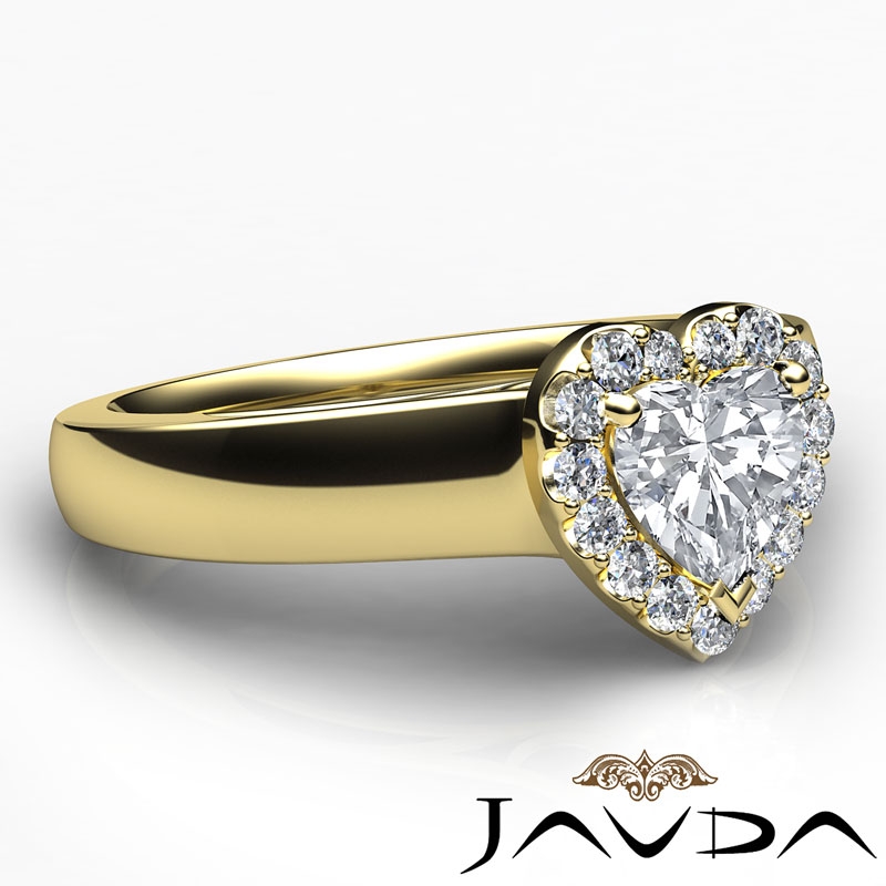 Halo Cathedral Wide Shank style Engagement Ring, center is Heart shape Diamond Report by GIA, G Color & SI2 clarity, Made in 14k Yellow Gold (0.71 ct. tw.)