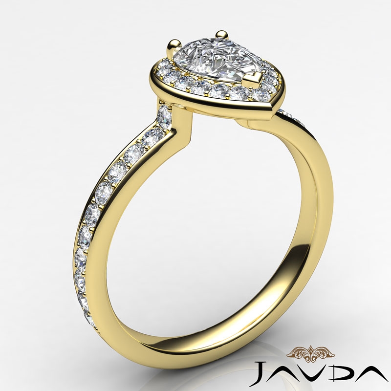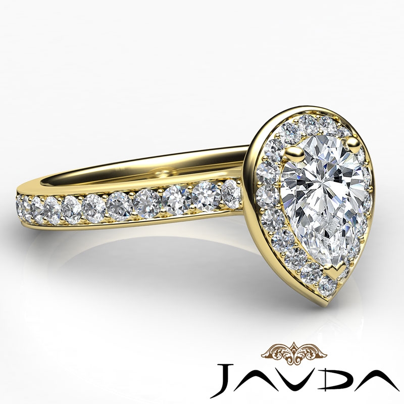 Diamond Engagement Halo Pave Setting Pear Semi Mount Ring 14k Yellow Gold 0.45Ct.