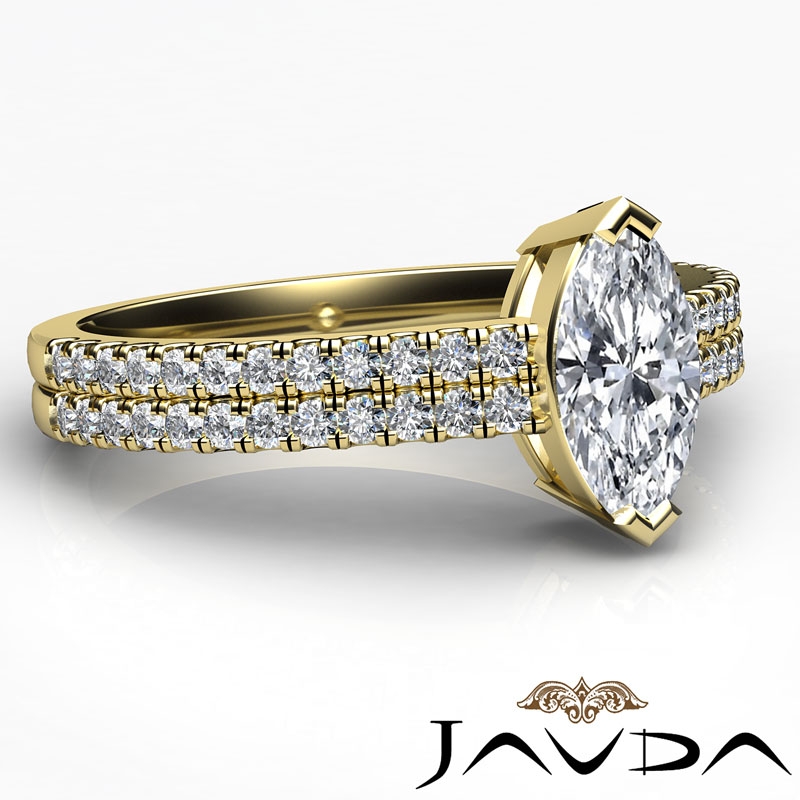 style Engagement Ring, center is Marquise shape Diamond Report by GIA, J Color & VS2 clarity, Made in 14k Yellow Gold (1.1 ct. tw.)