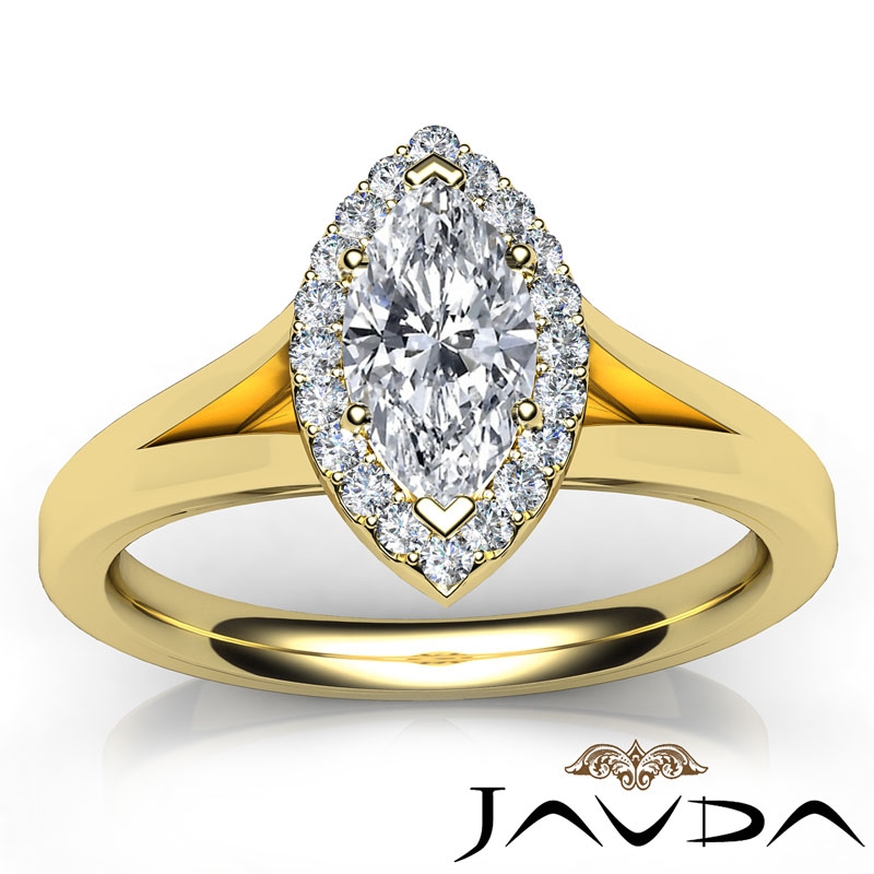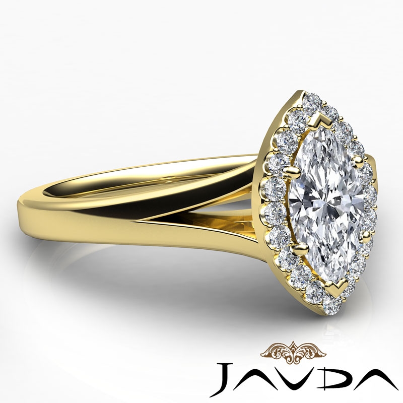Split Shank Halo French Pave style Engagement Ring, center is Marquise shape Diamond Report by GIA, J Color & VS2 clarity, Made in 14k Yellow Gold (0.8 ct. tw.)
