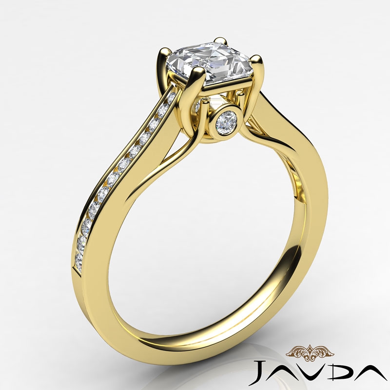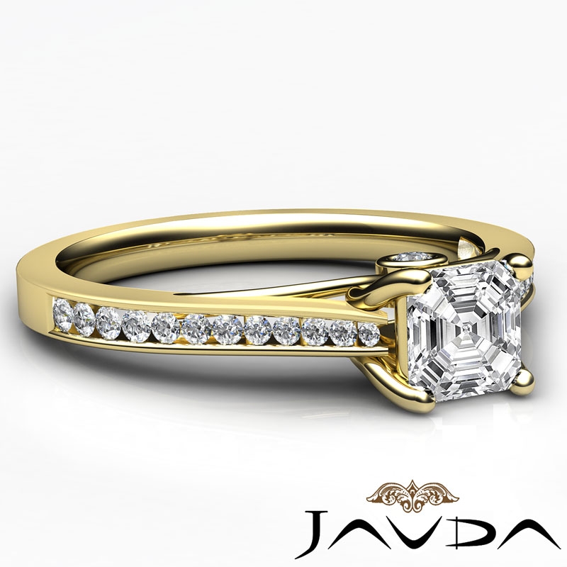 Channel Setting Diamond Engagement Asscher Semi Mount Ring 14k Yellow Gold 0.3Ct - javda.com