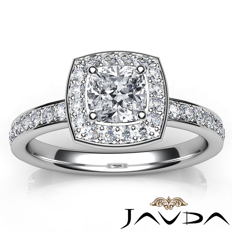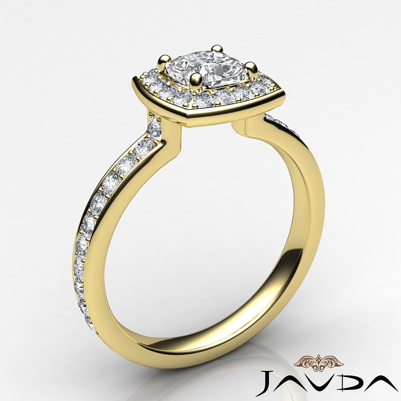 Diamond Engagement Halo Pave Setting Cushion Semi Mount Ring 14k Yellow Gold 0.95Ct.
