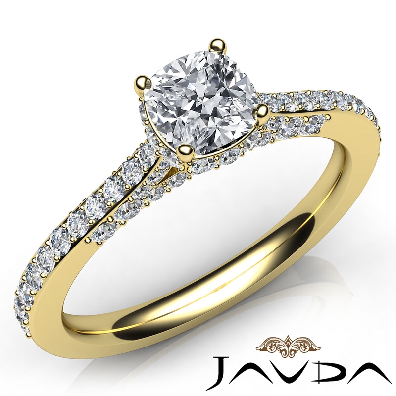 style Engagement Ring, center is Cushion shape Diamond Report by GIA, J Color & VVS2 clarity, Made in 18k Yellow Gold (1.16 ct. tw.)