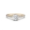 Cushion shape is diamond certified by GIA, 100% natural J color & VVS2 clarity {0.51 ctw.}.