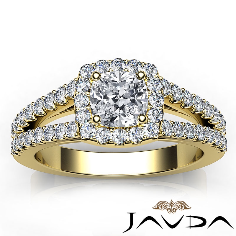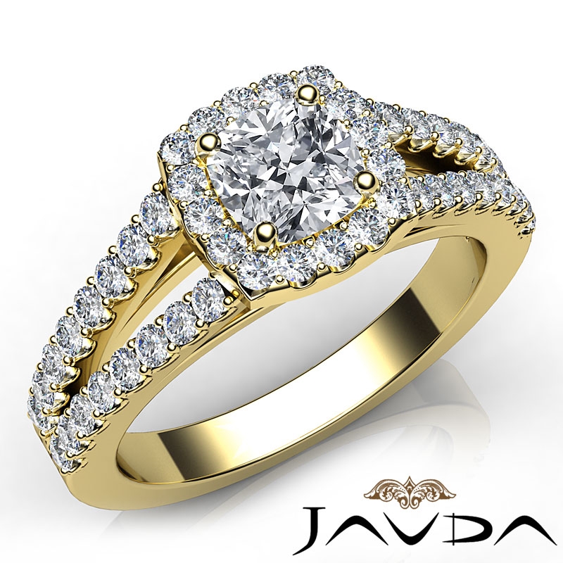 Gorgeous Halo Prong Diamond Engagement Cushion Semi Mount Ring 18k Yellow Gold 0.75Ct.