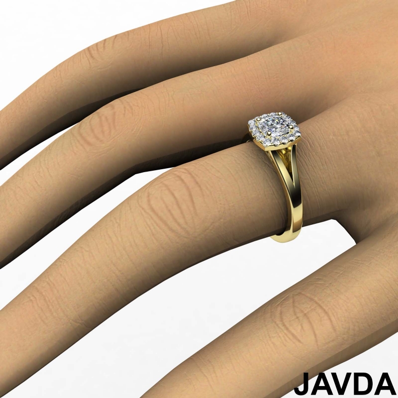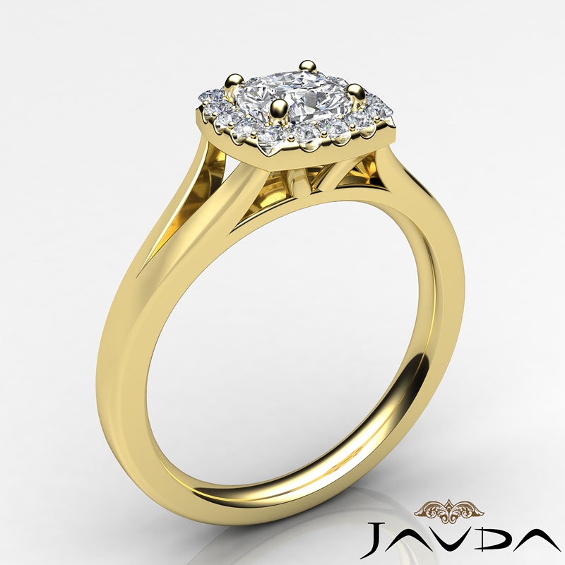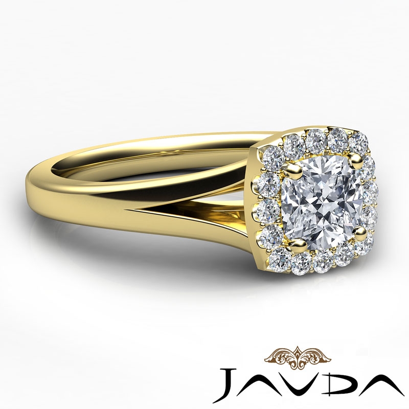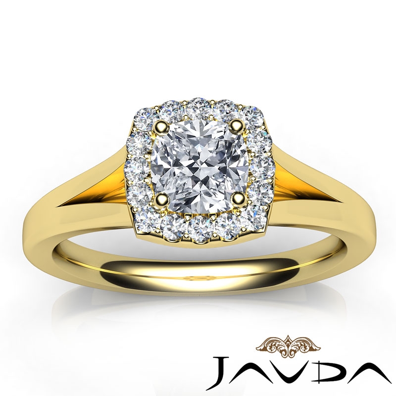 Classic Halo Pave Split Shank style Engagement Ring, center is Cushion shape Diamond Report by GIA, E Color & VVS2 clarity, Made in 18k Yellow Gold (1.2 ct. tw.)