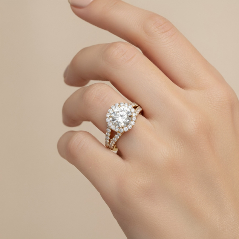 Halo Prong Round Diamond Gorgeous Engagement Semi Mount Ring 14k Yellow Gold 0.75Ct.