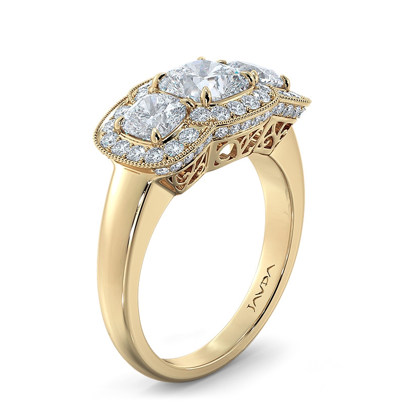 style Engagement Ring, center is Cushion shape Diamond Report by IGI, D Color & VS1 clarity, Made in 14k Yellow Gold (2.06 ct. tw.)