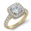 1.1Ct Halo Pave Diamond Engagement Cushion Semi Mount Ring 18k Yellow Gold Band.