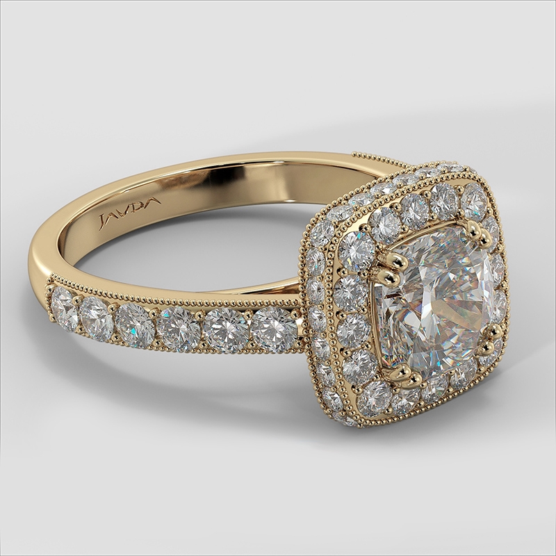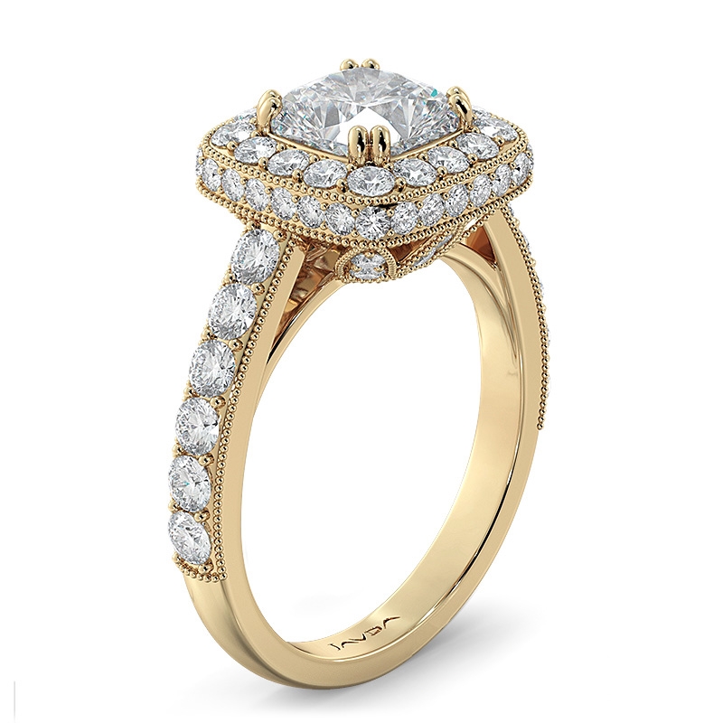 style Engagement Ring, center is Cushion shape Diamond Report by IGI, D Color & VS1 clarity, Made in 18k Yellow Gold (2.11 ct. tw.)