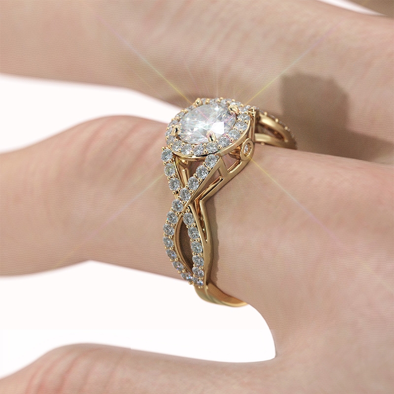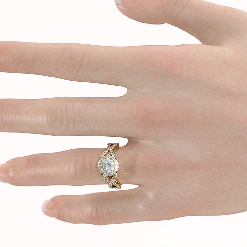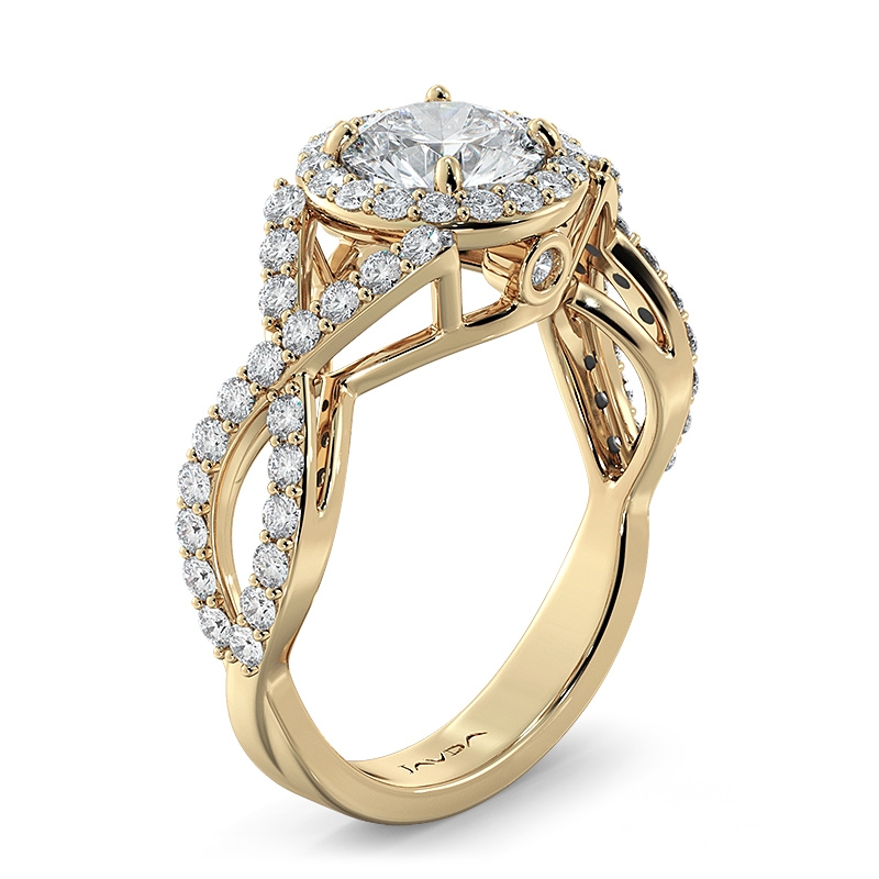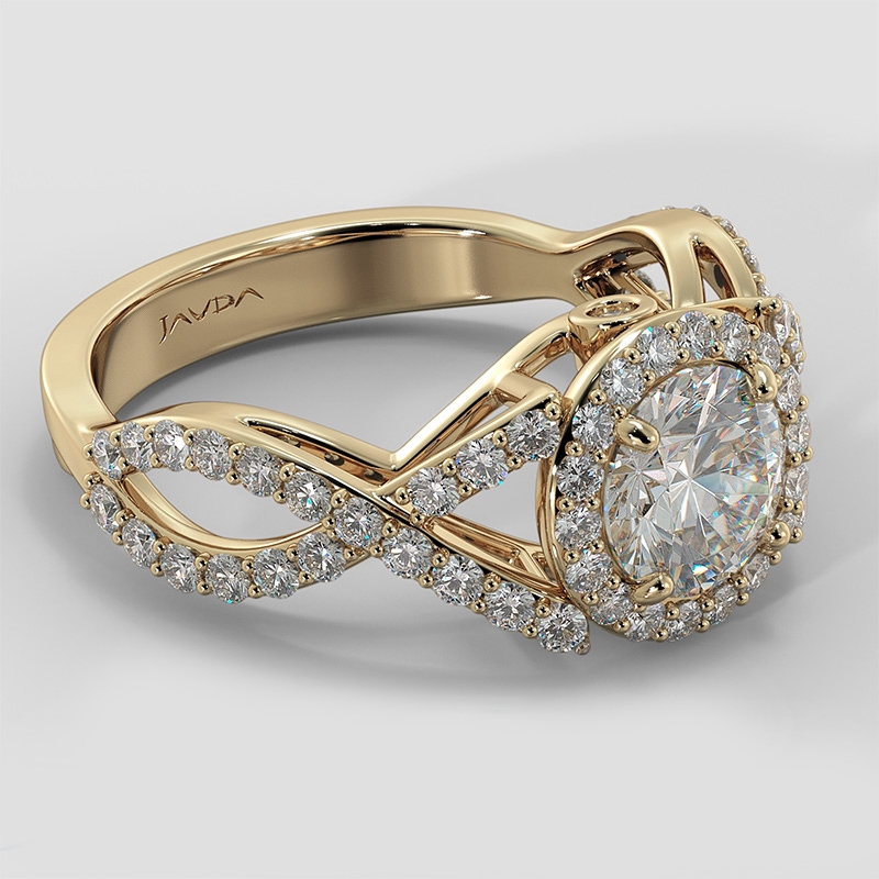 Halo XOXO Diamond Engagement Ring 18k Yellow Gold Round Semi Mount Band 0.9Ct - javda.com