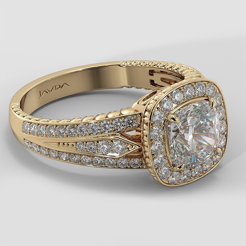 Diamond Vintage Engagement Halo Ring Cushion Semi Mount 18k Yellow Gold Band 0.8Ct.