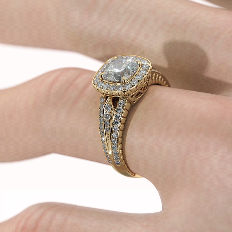 style Engagement Ring, center is Cushion shape Diamond Report by IGI, E Color & VS1 clarity, Made in 18k Yellow Gold (2.17 ct. tw.)
