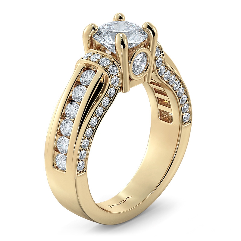 style Engagement Ring, center is Round shape Diamond Report by IGI, D Color & VS1 clarity, Made in 18k Yellow Gold (1.94 ct. tw.)