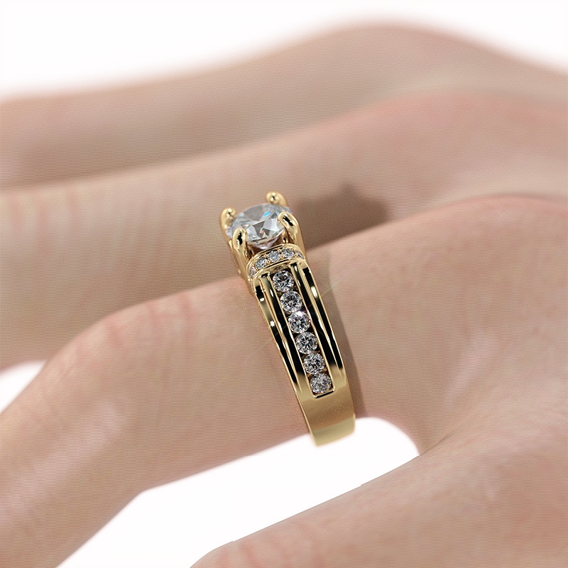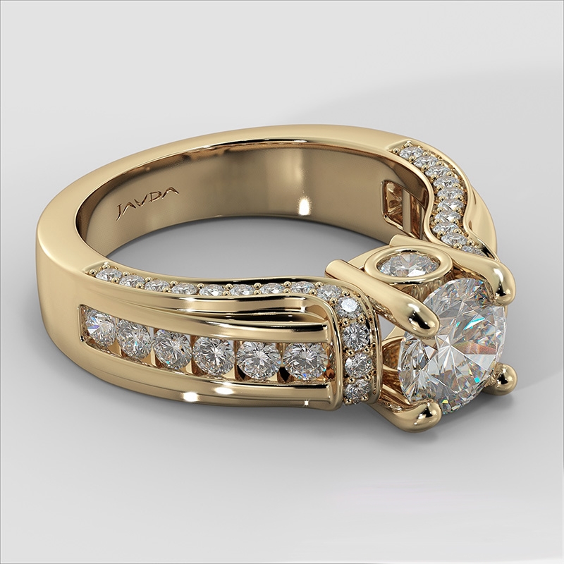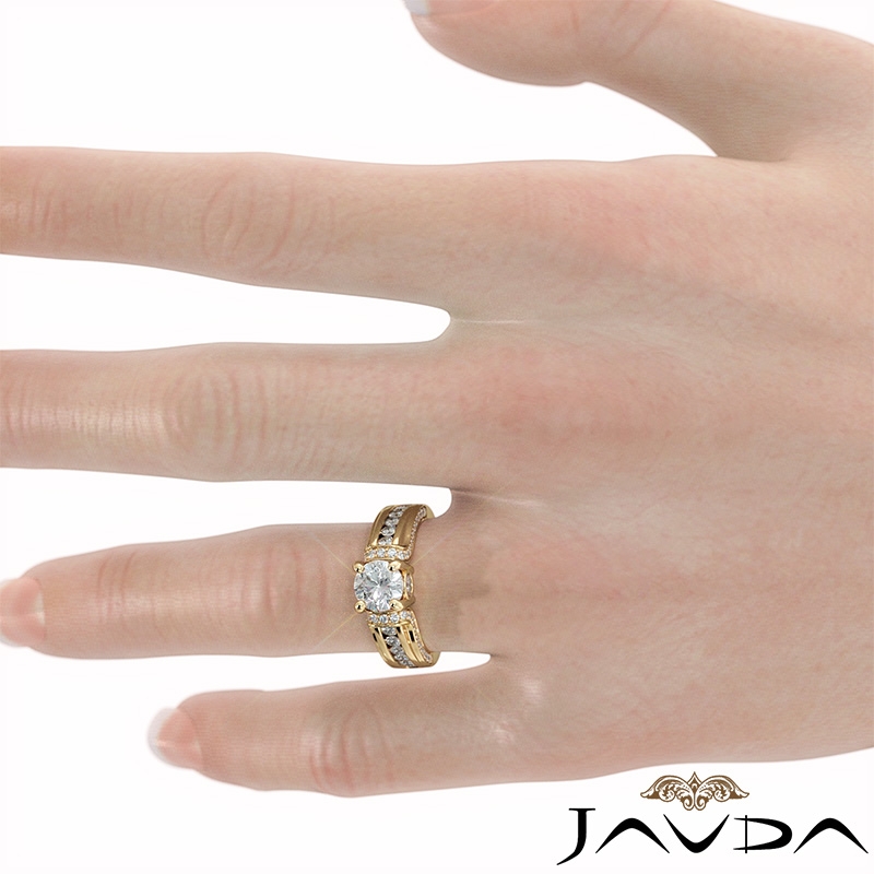 Bezel Channel Set Diamond Engagement Ring 18k Yellow Gold Round Semi Mount 0.9Ct.