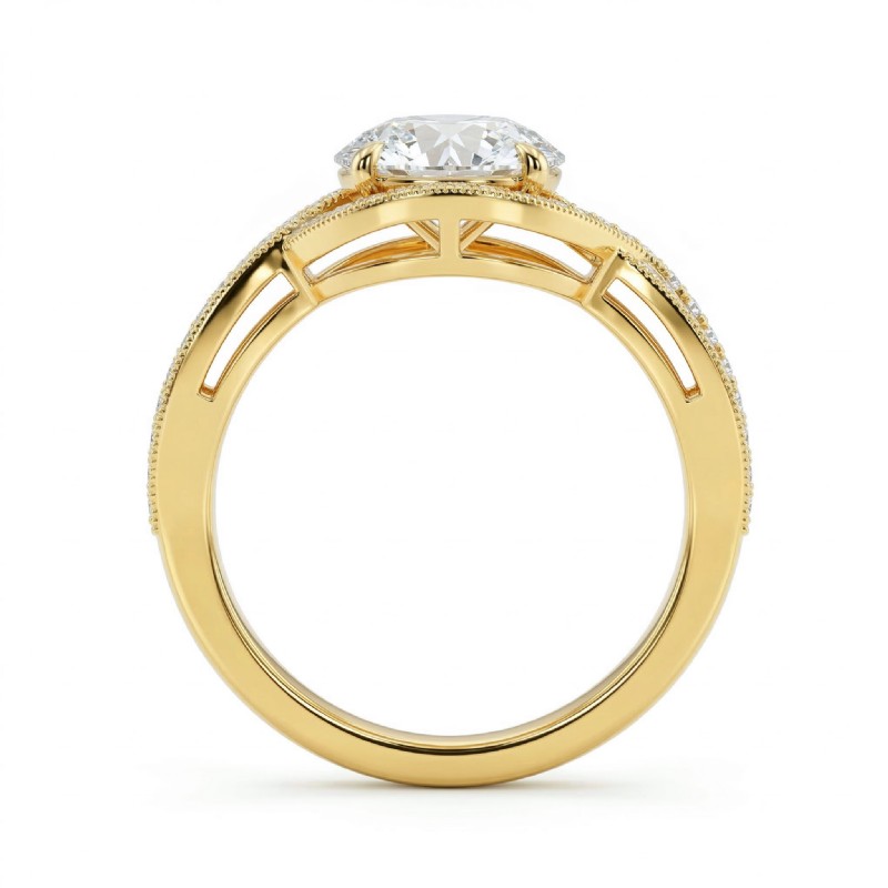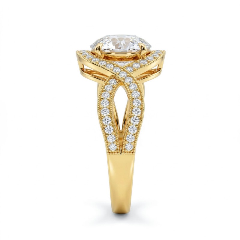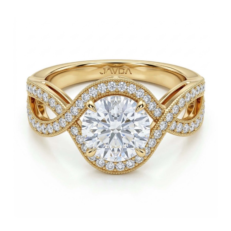 style Engagement Ring, center is Round shape Diamond Report by IGI, D Color & VS1 clarity, Made in 18k Yellow Gold (1.49 ct. tw.)