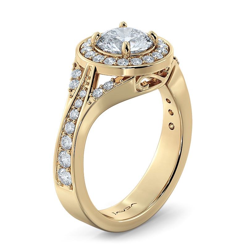 style Engagement Ring, center is Round shape Diamond Report by IGI, D Color & VS1 clarity, Made in 18k Yellow Gold (1.49 ct. tw.)