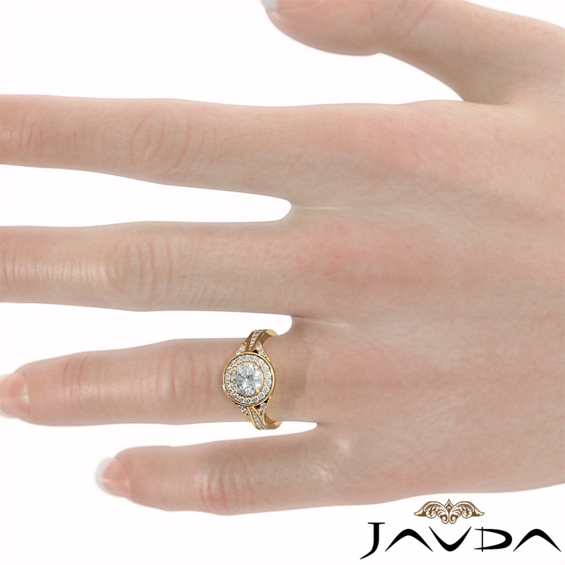 Diamond Engagement Halo Pave Set Ring Round Semi Mount 18k Yellow Gold 0.45Ct.