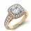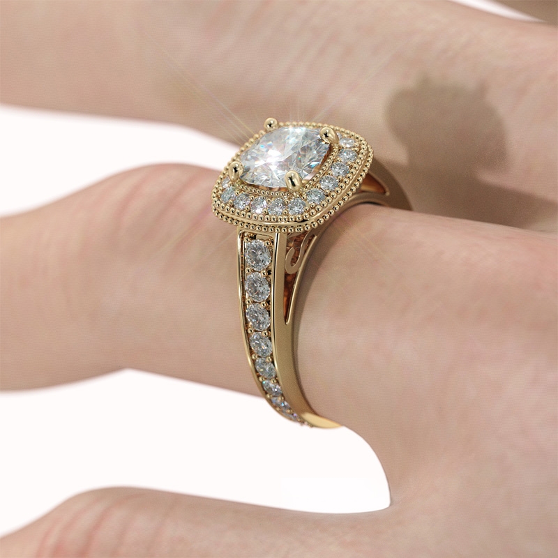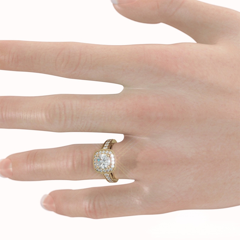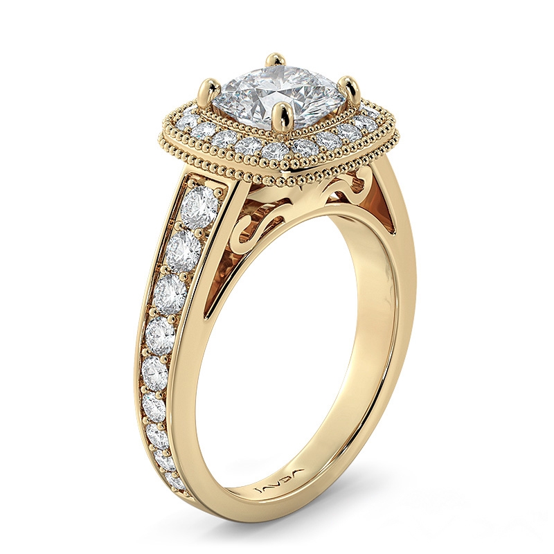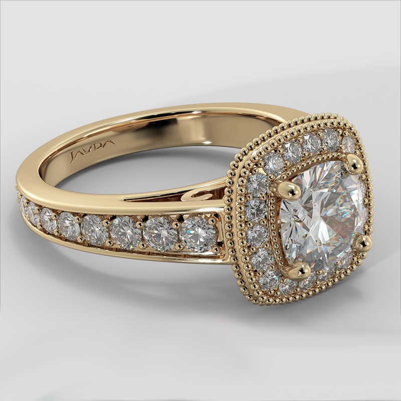Diamond Engagement Cushion Semi Mount 18k Yellow Gold Halo Milgrain Ring 0.8Ct.