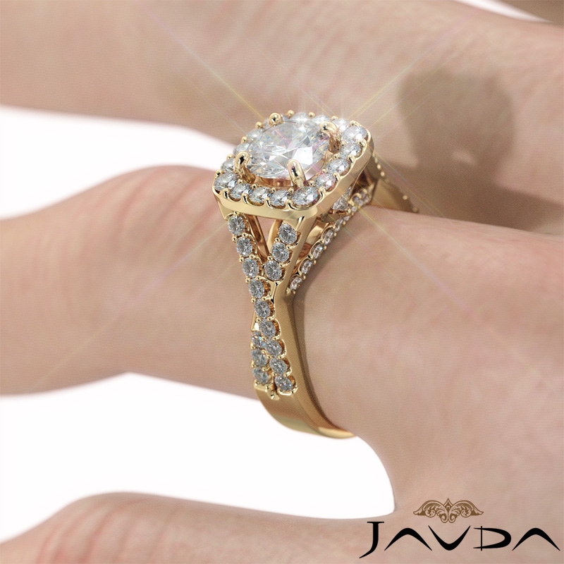 Halo U Cut Prong Diamond Engagement Ring Round Semi Mount 14k Yellow Gold 1.1Ct.