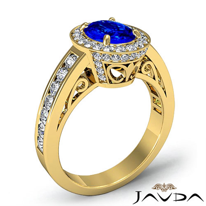 Vintage Halo Filigree Bar Set style Engagement Ring, center is Oval shape D Block Tanzanite Report by , Color & clarity, Made in 18k Yellow Gold (1.8 ct. tw.)