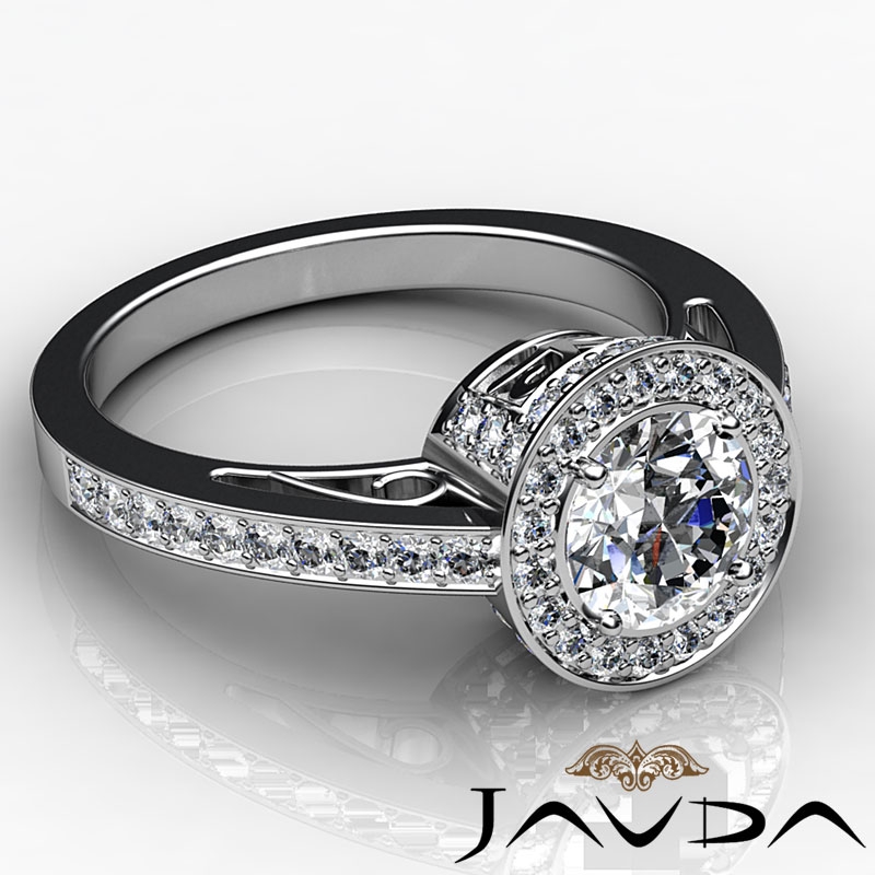 Halo Pave Setting Diamond Engagement Round Semi Mount Ring Platinum 950 0.8Ct.