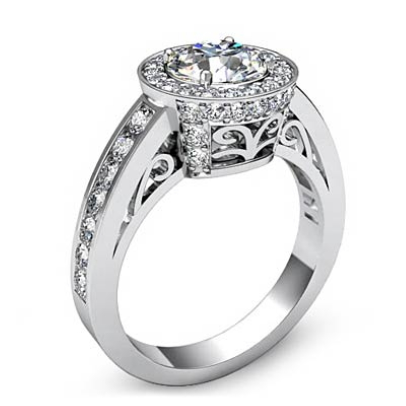 Vintage Halo Filigree Bar Set style Engagement Ring, center is Round shape Diamond Report by GIA, I Color & SI1 clarity, Made in Platinum 950 (1.8 ct. tw.)