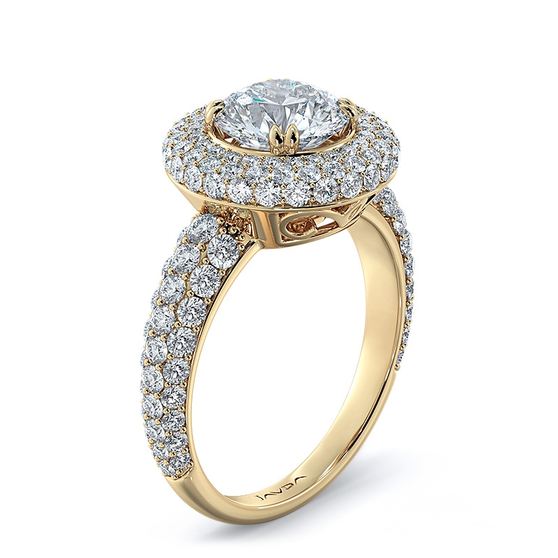 style Engagement Ring, center is Round shape Diamond Report by IGI, D Color & VS1 clarity, Made in 18k Yellow Gold (2.29 ct. tw.)