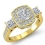 3 Stone Diamond Engagement Emerald Ring 18k Yellow Gold Halo Semi Mount 1.1Ct.