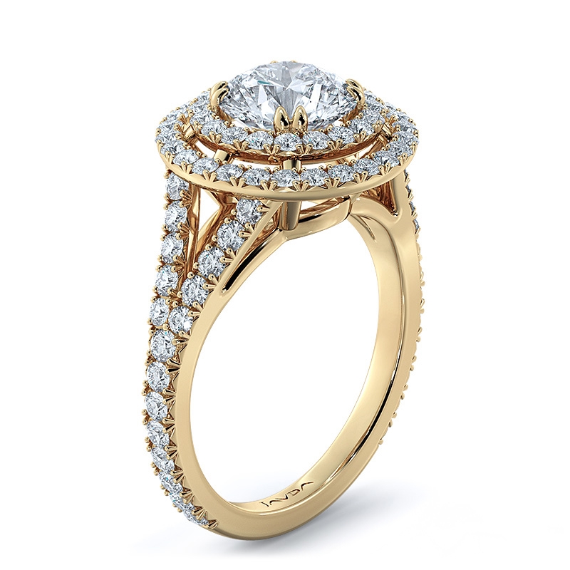 style Engagement Ring, center is Round shape Diamond Report by IGI, D Color & VS1 clarity, Made in 18k Yellow Gold (2.34 ct. tw.)