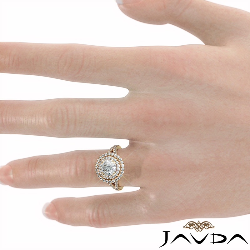 Round Semi Mount French V Cut Pave Diamond Engagement Ring 18k Yellow Gold 1.3Ct.