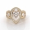 Pear Diamond Antique Engagement Halo 3Stone Ring Setting 18k Yellow Gold Semi-Mount 1.85Ct.