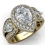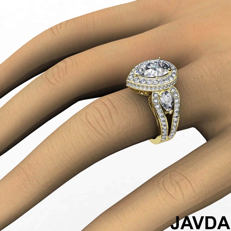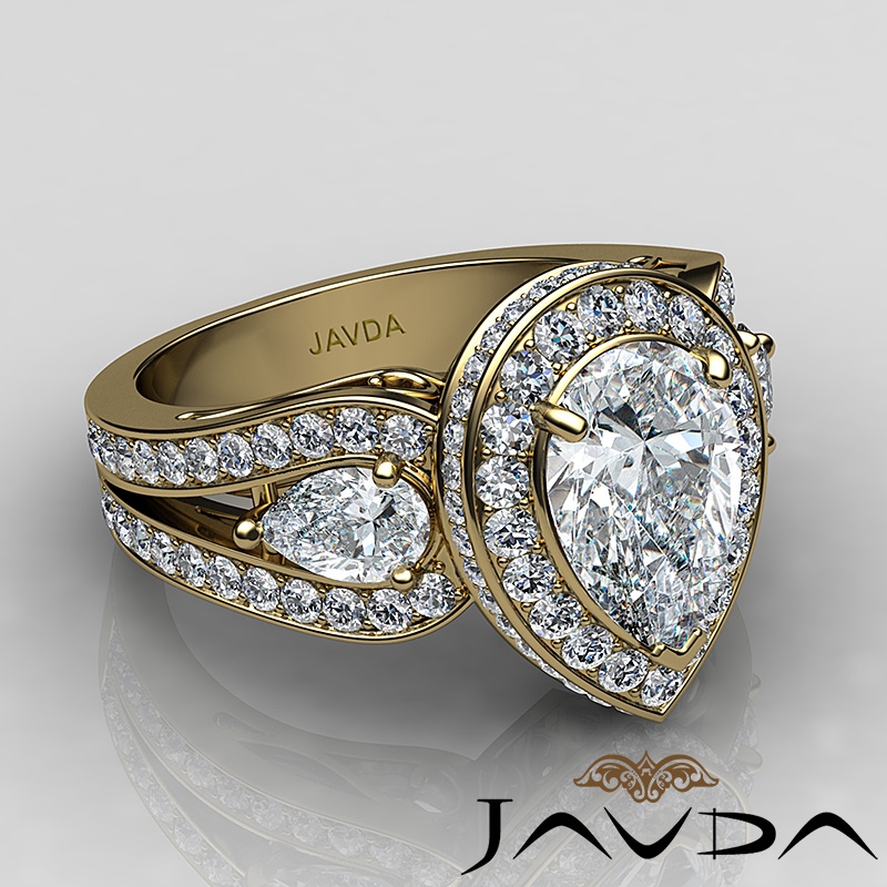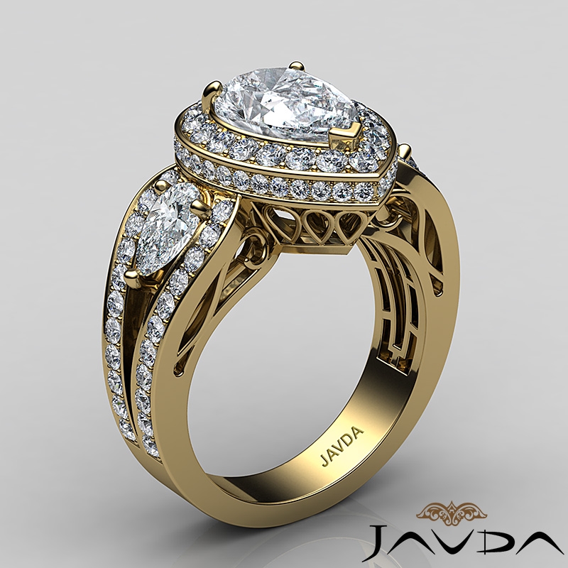 Pear Diamond Antique Engagement Halo 3Stone Ring Setting 18k Yellow Gold Semi-Mount 1.85Ct.