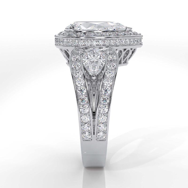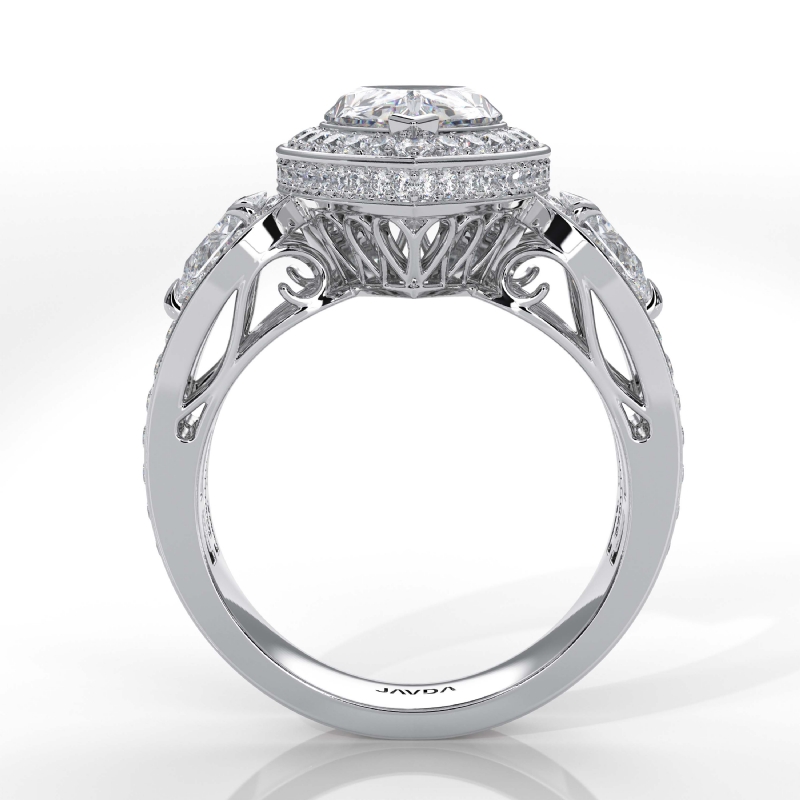 Pear Diamond Antique Engagement Halo 3Stone Ring Setting Platinum 950 Semi-Mount 1.85Ct - javda.com