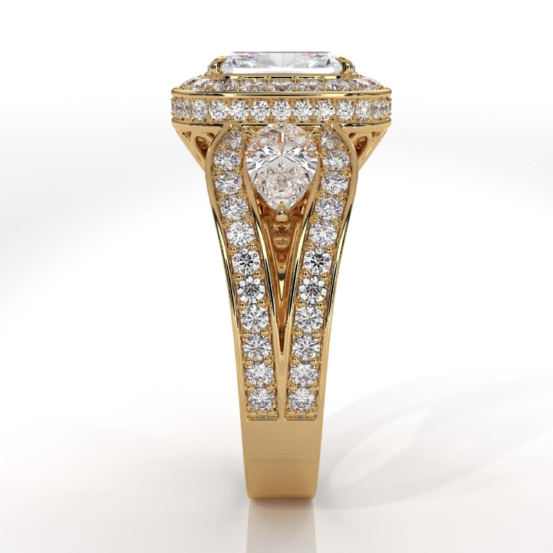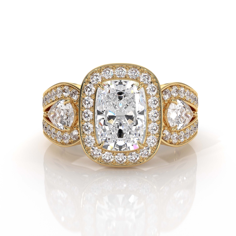 Cushion 3 Stone Halo Diamond Engagement Ring 18k Yellow Gold Vintage Semi Mount 1.85Ct - javda.com
