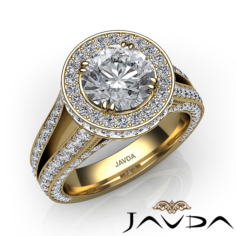 Halo Pave Diamond Engagement Elegant Ring 18k Yellow Gold Round Semi Mount 1.5Ct.
