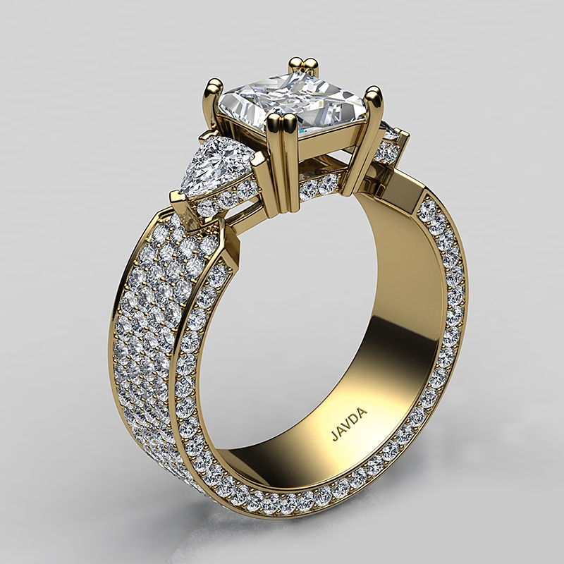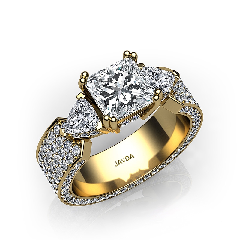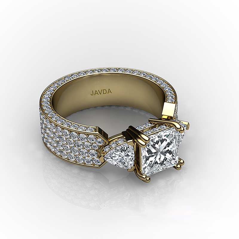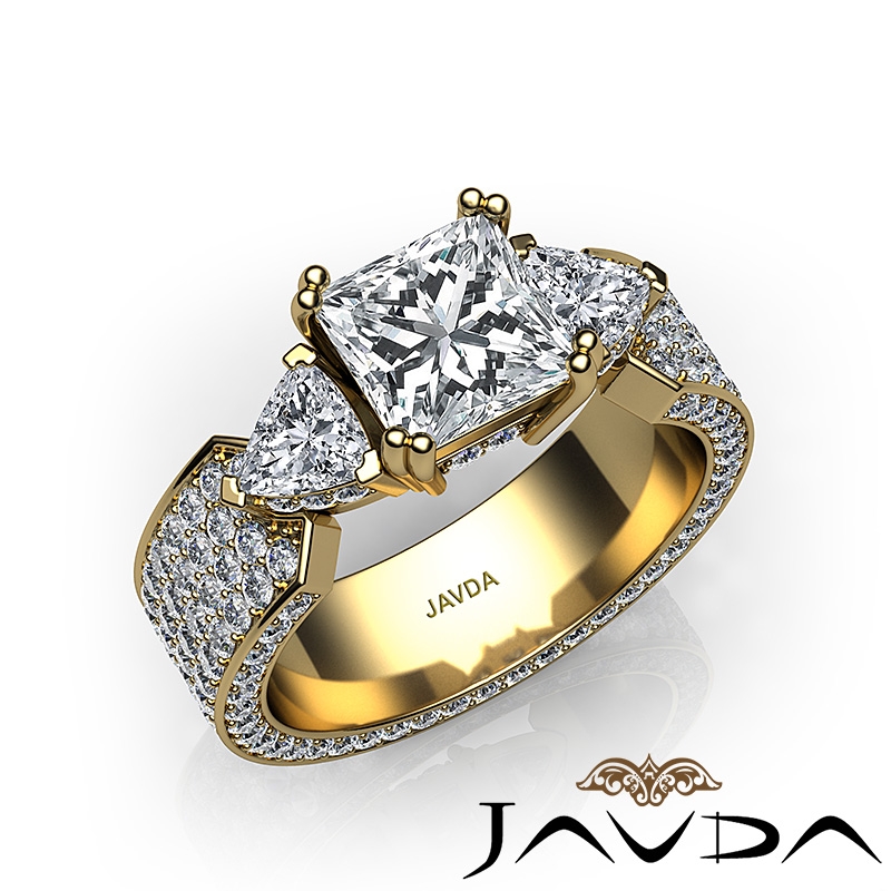 style Engagement Ring, center is Princess shape Diamond Report by IGI, E Color & VS1 clarity, Made in 18k Yellow Gold (2.92 ct. tw.)