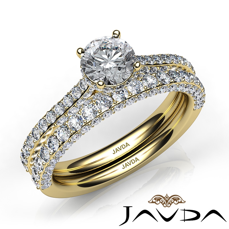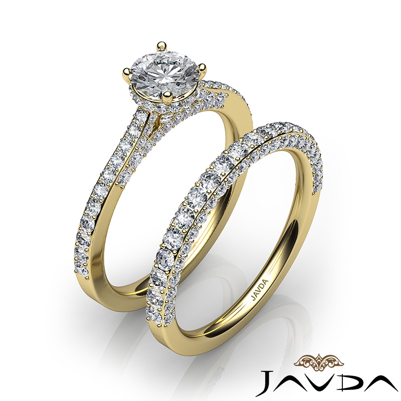 Pave Diamond Engagement Ring Round Semi Mount Bridal Set 18k Yellow Gold 1.65Ct.