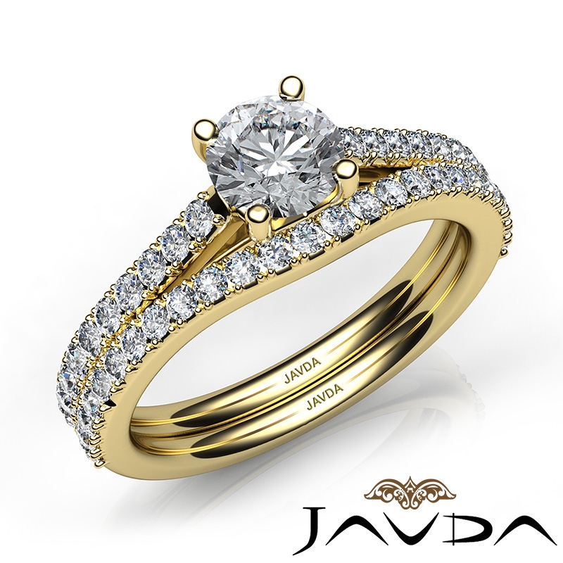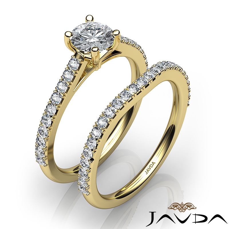 Prong Setting Bridal Set style Engagement Ring, center is Round shape Diamond Report by GIA, D Color & SI1 clarity, Made in 18k Yellow Gold (1.3 ct. tw.)