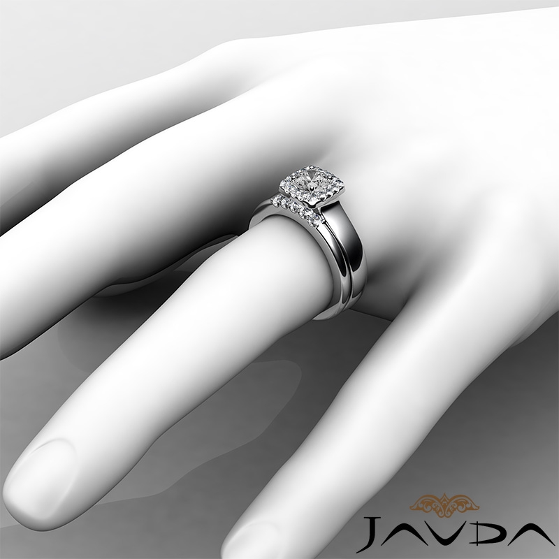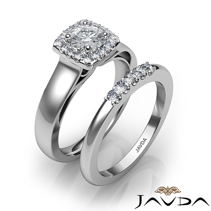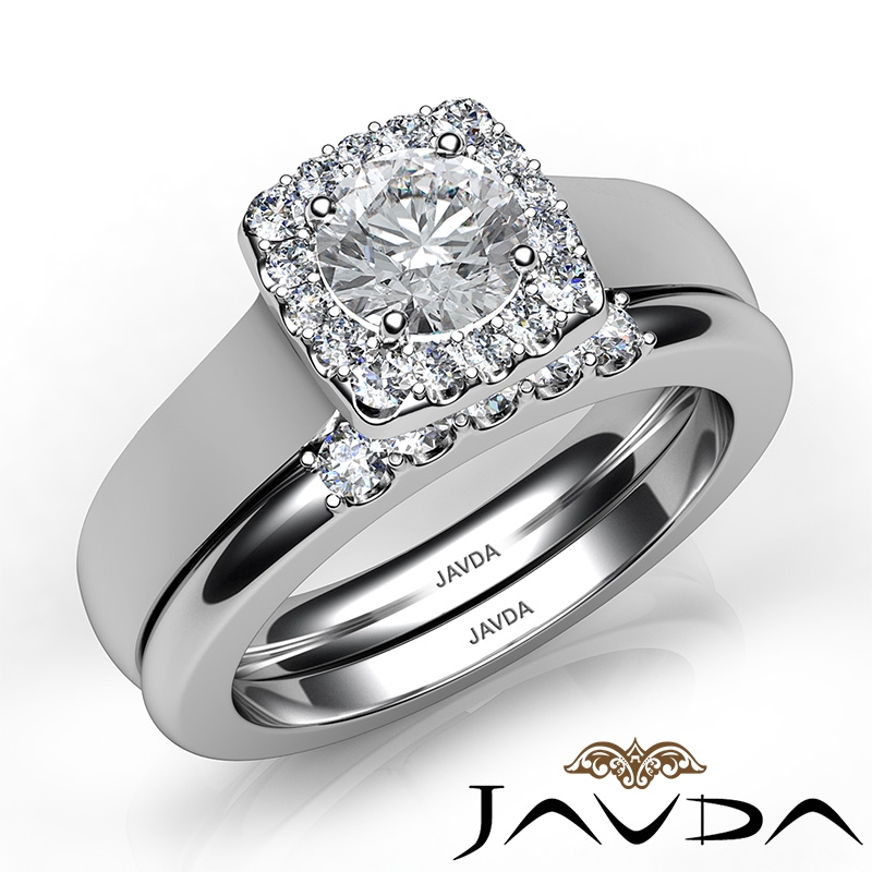 Halo Filigree Bridal Set Pave style Engagement Ring, center is Round shape Diamond Report by GIA, E Color & VS2 clarity, Made in Platinum 950 (0.9 ct. tw.)