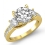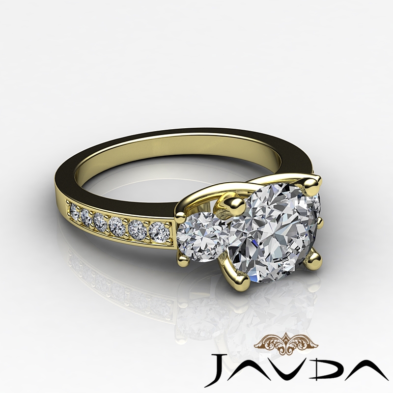 Trellis 3 Stone Sidestone style Engagement Ring, center is Round shape Diamond Report by GIA, H Color & SI1 clarity, Made in 18k Yellow Gold (1.6 ct. tw.)